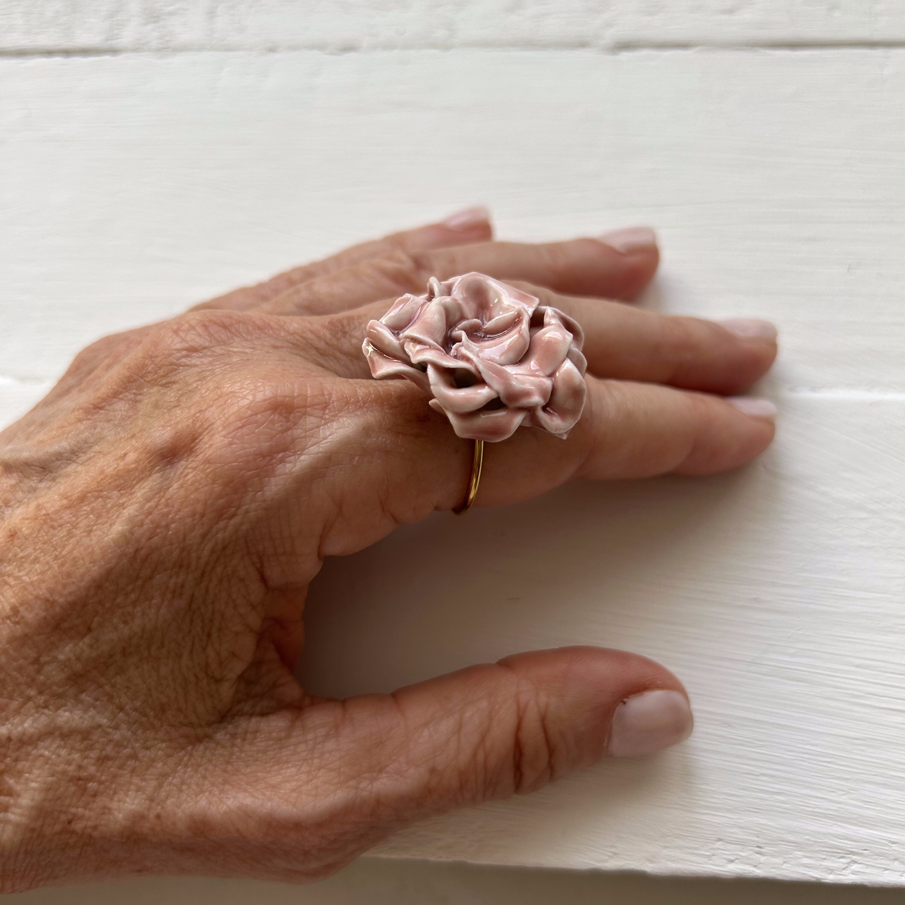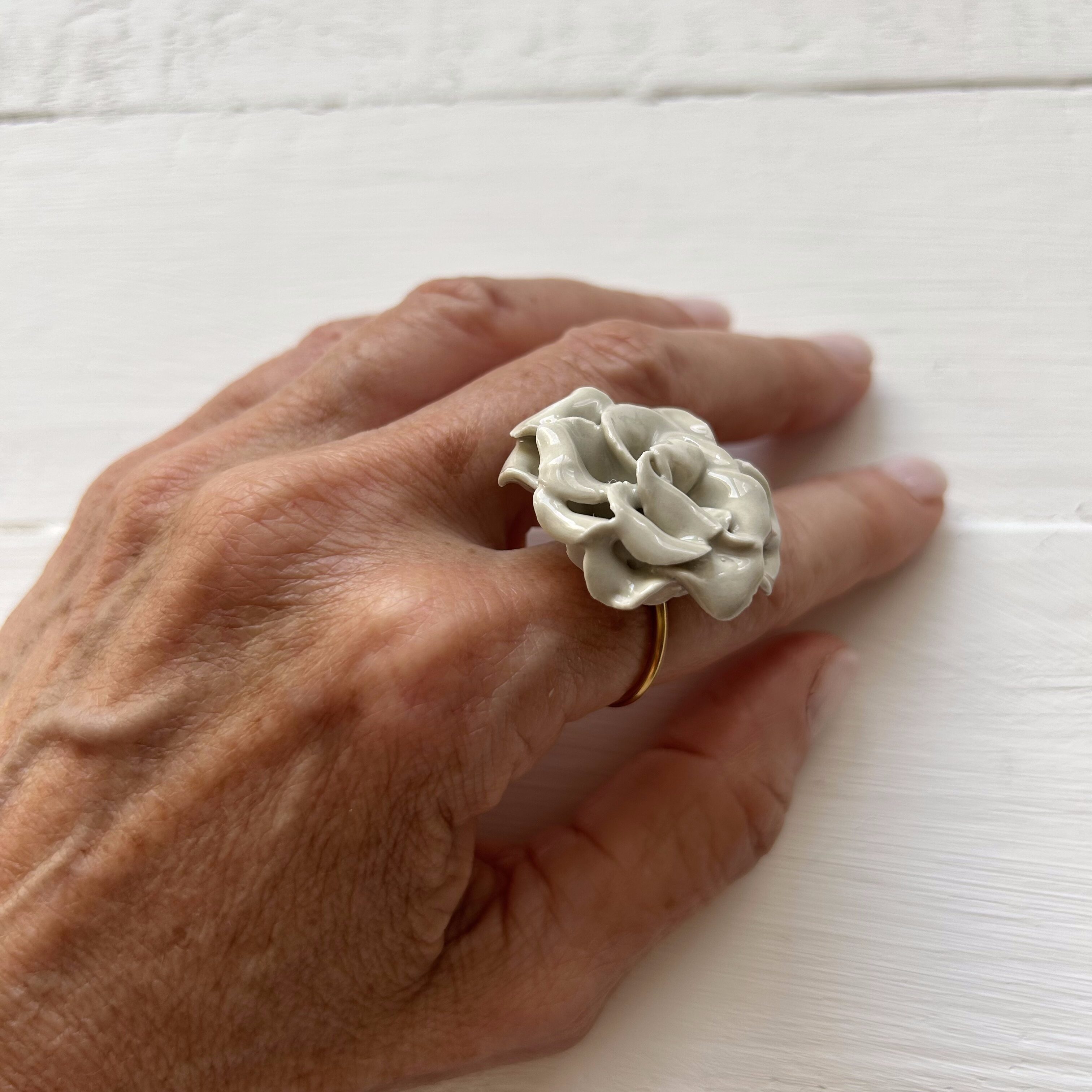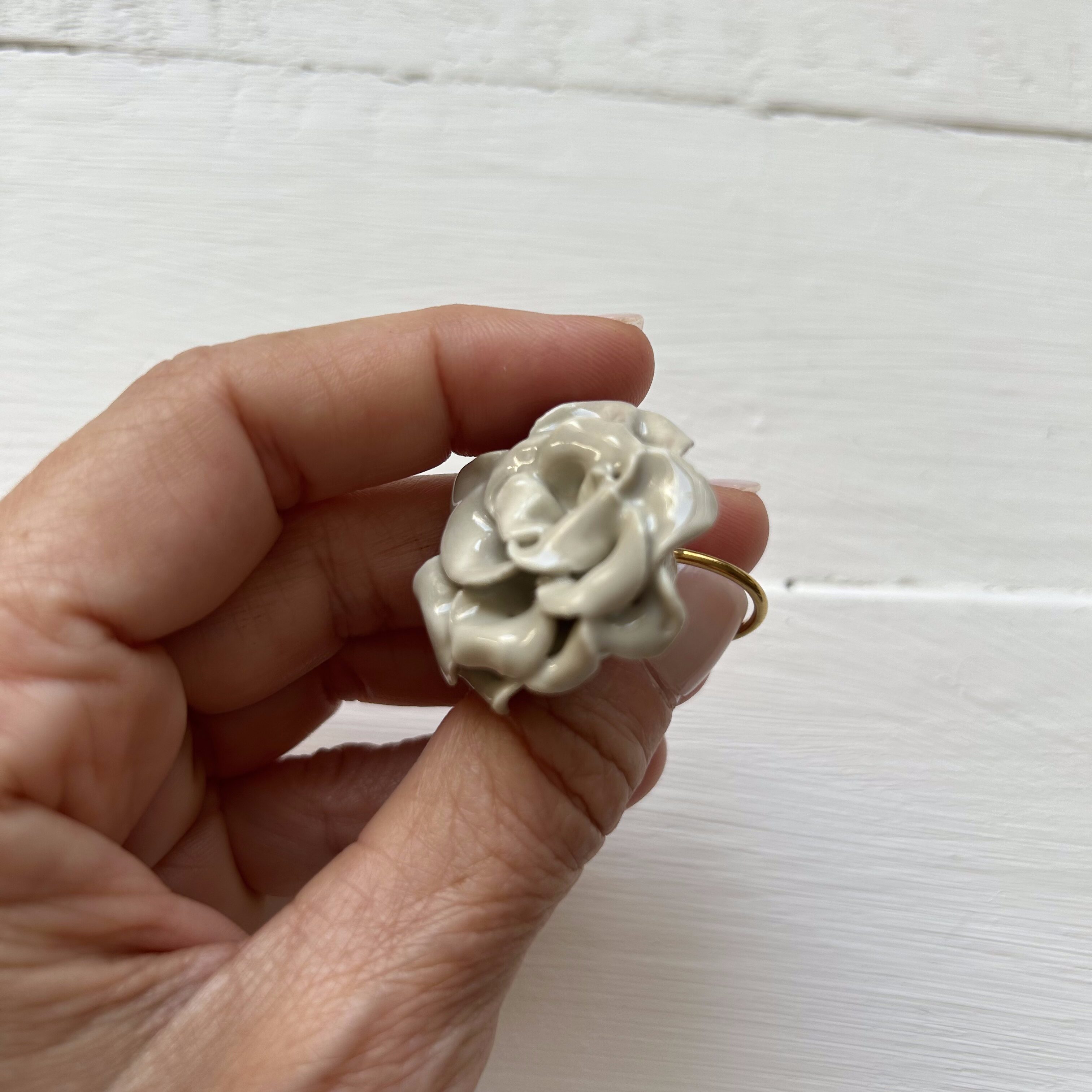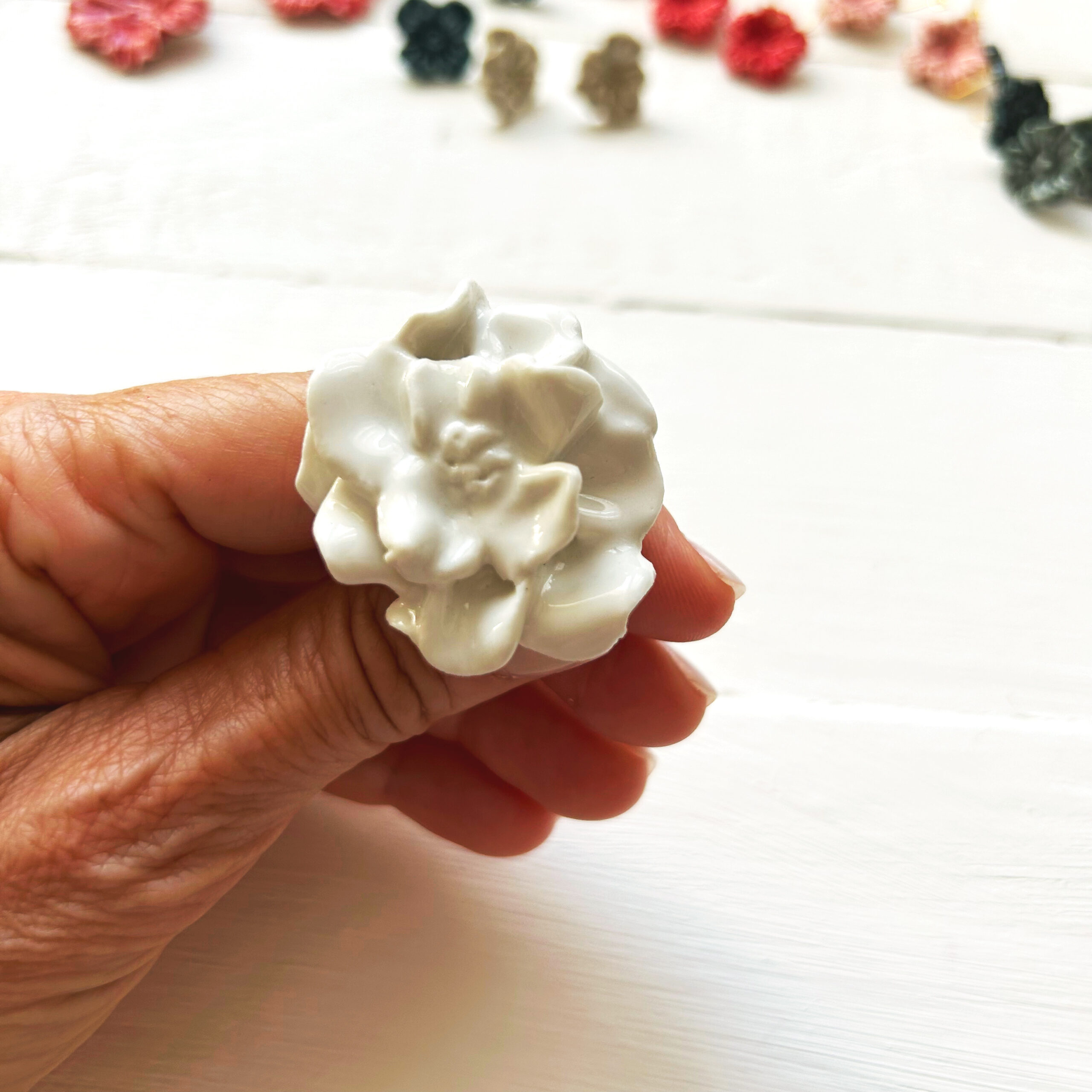 flor porcelana blanca , lacada en color hueso, medida aprox 30mm, fornitura ajustable