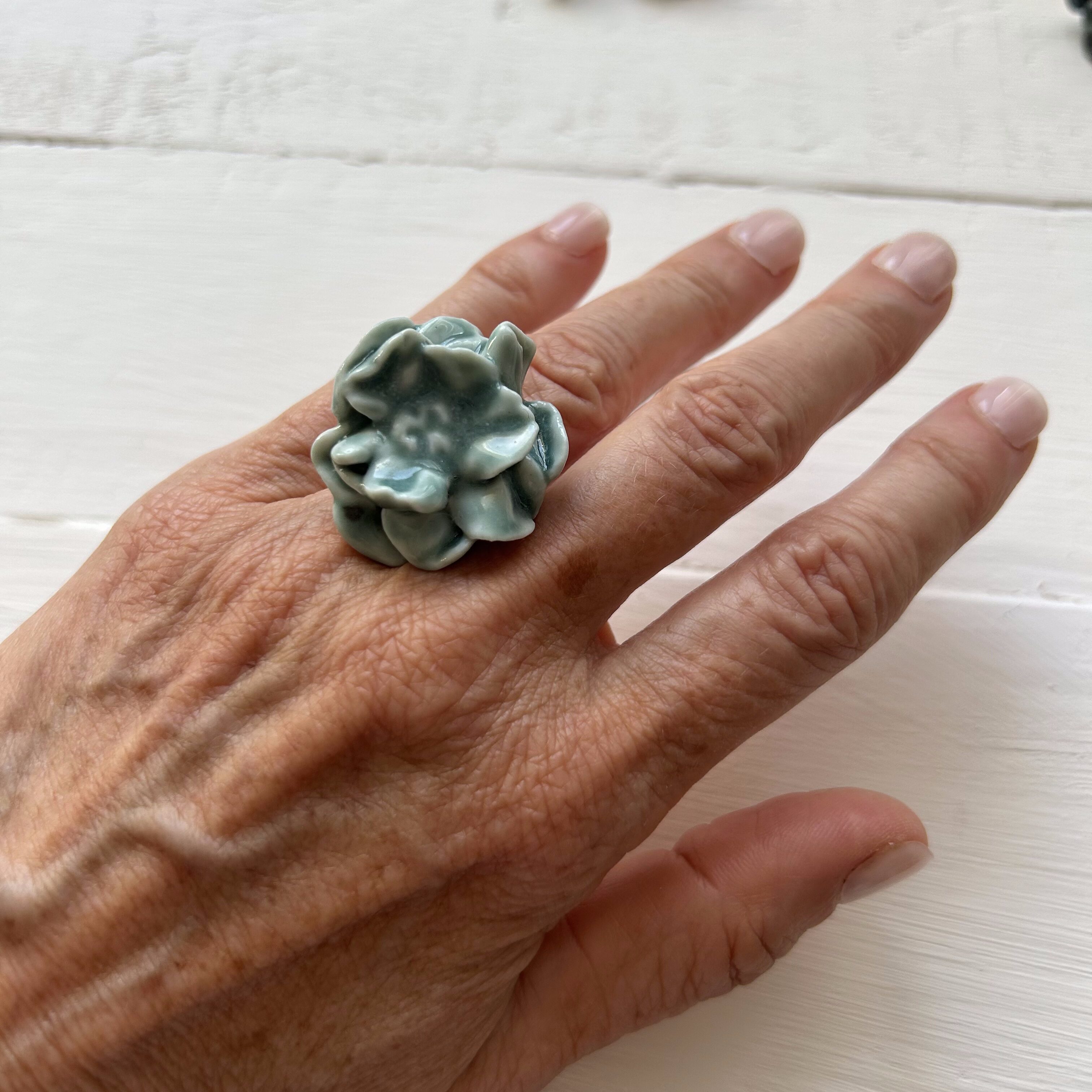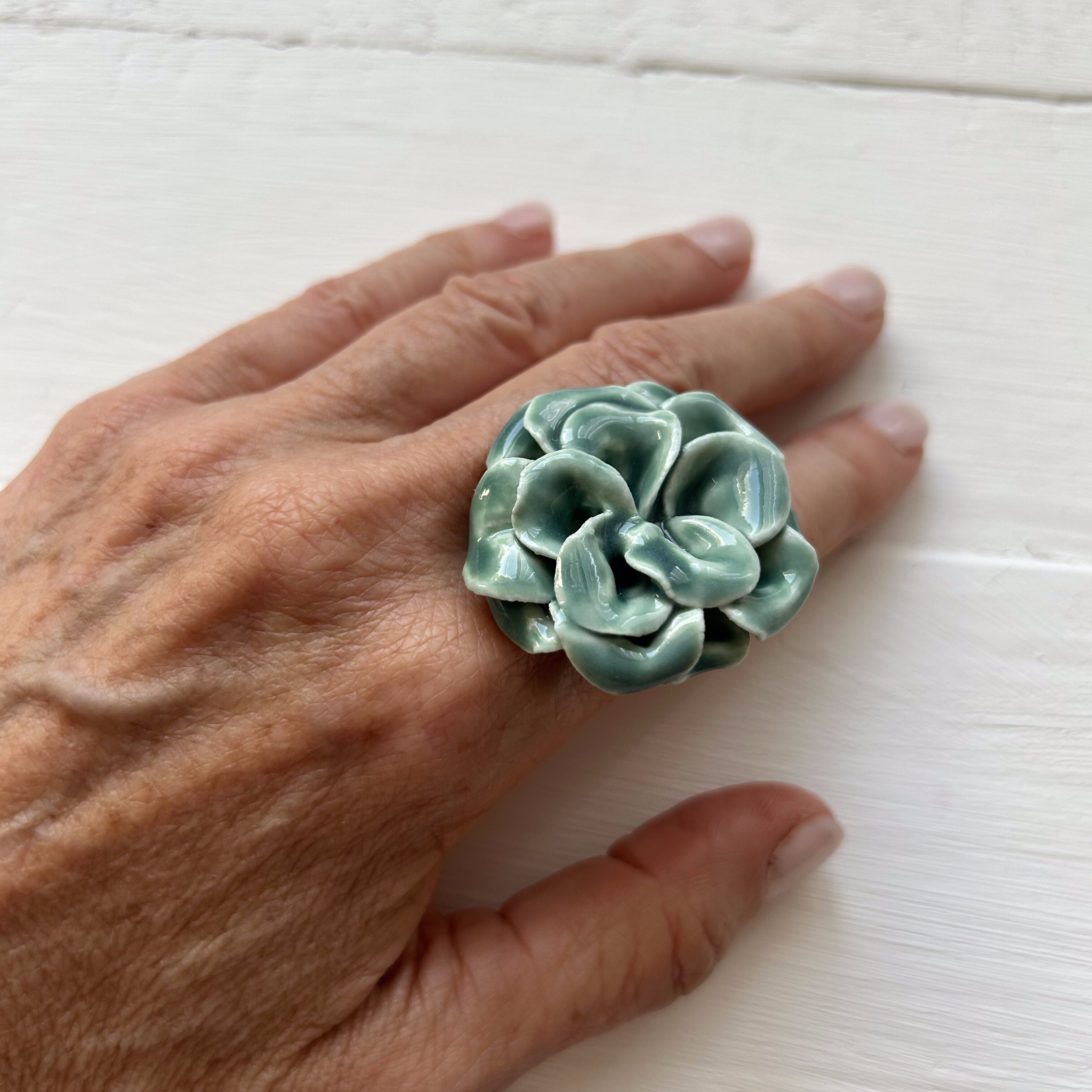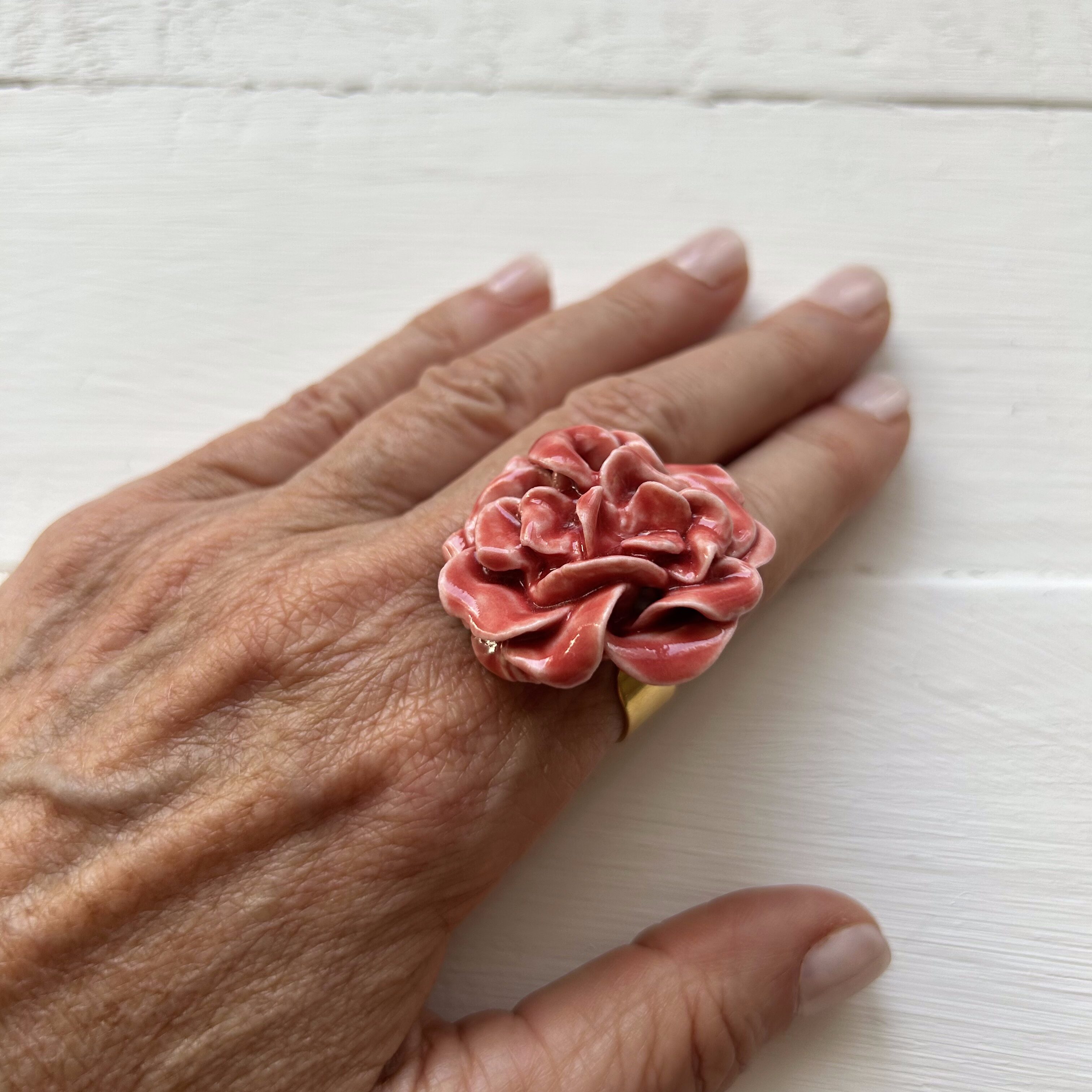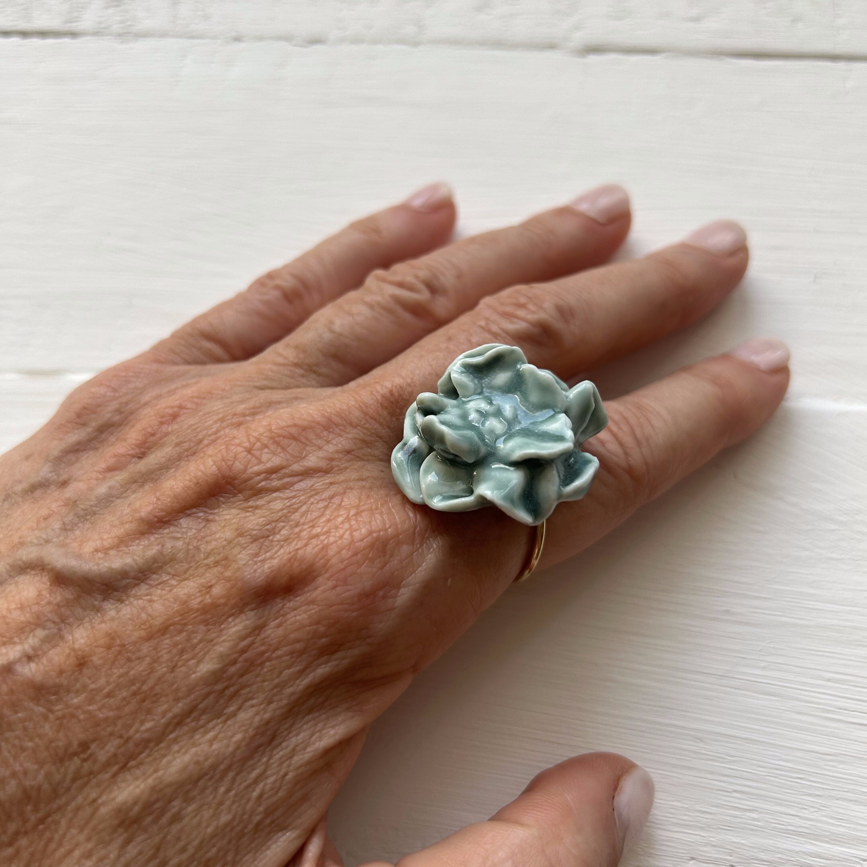 flor porcelana blanca , lacada en color hueso, medida aprox 30mm, fornitura ajustable
