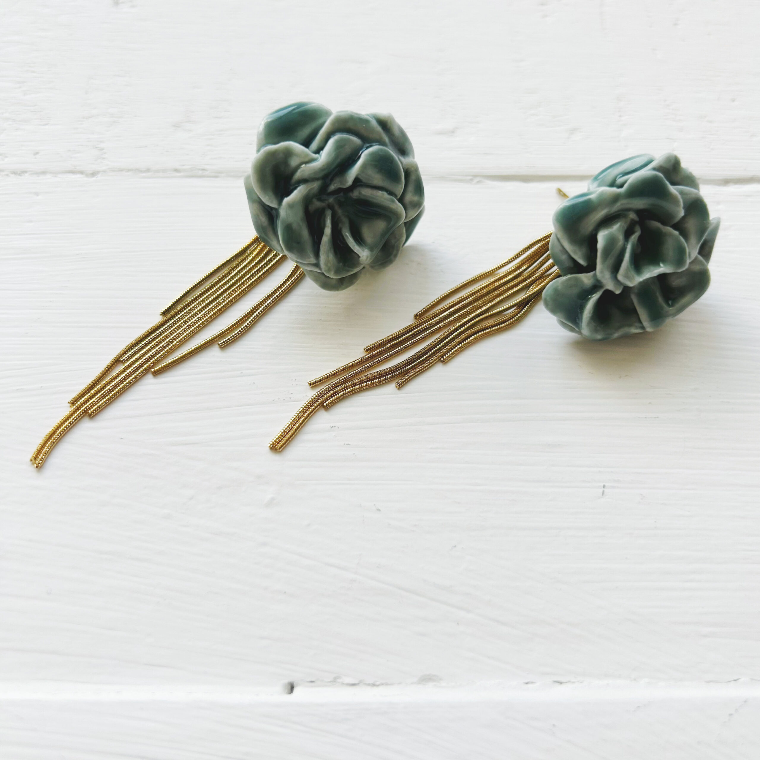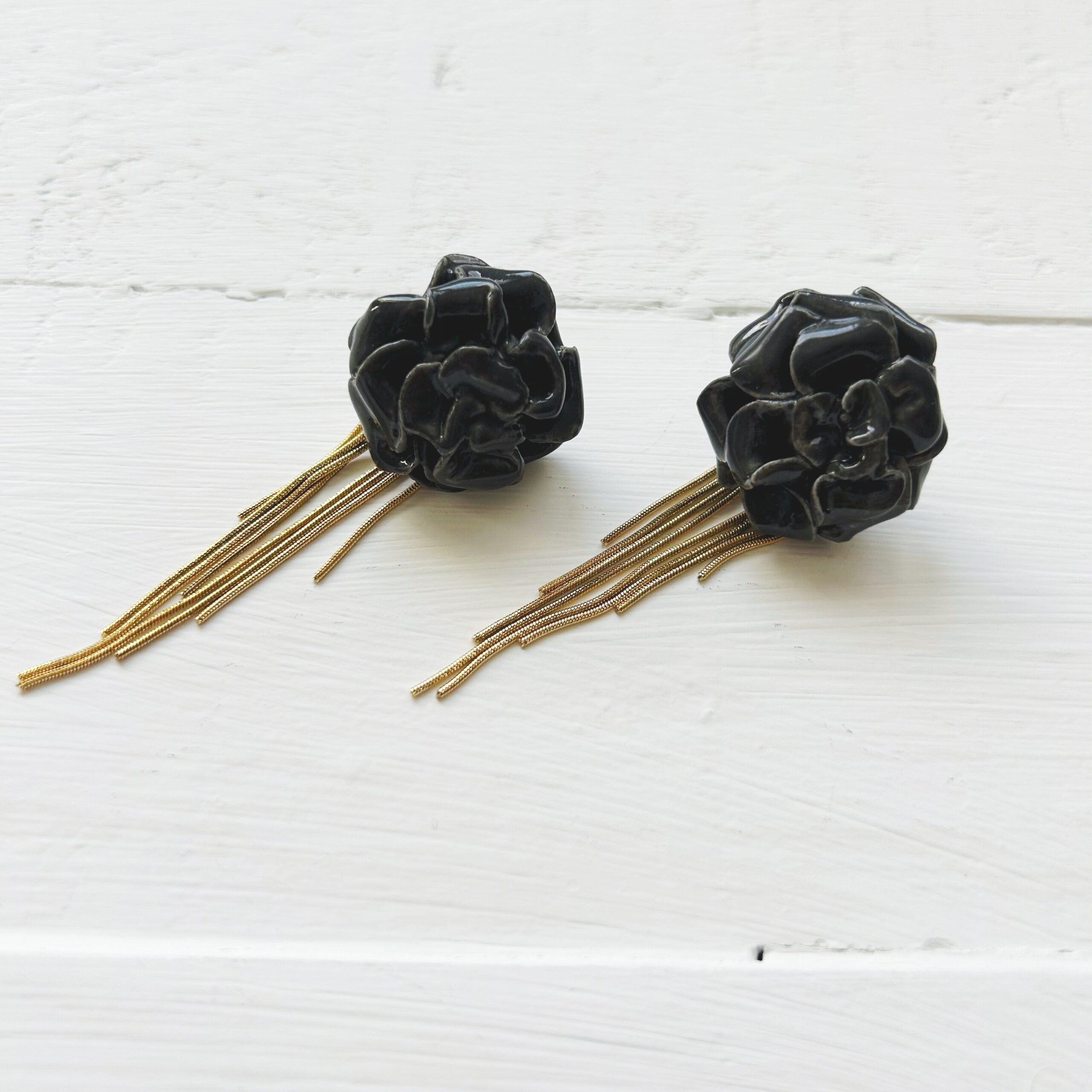 Pendientes de cerámica porcelana esmaltada con fornitura de acero bañado en oro, cierre de presión