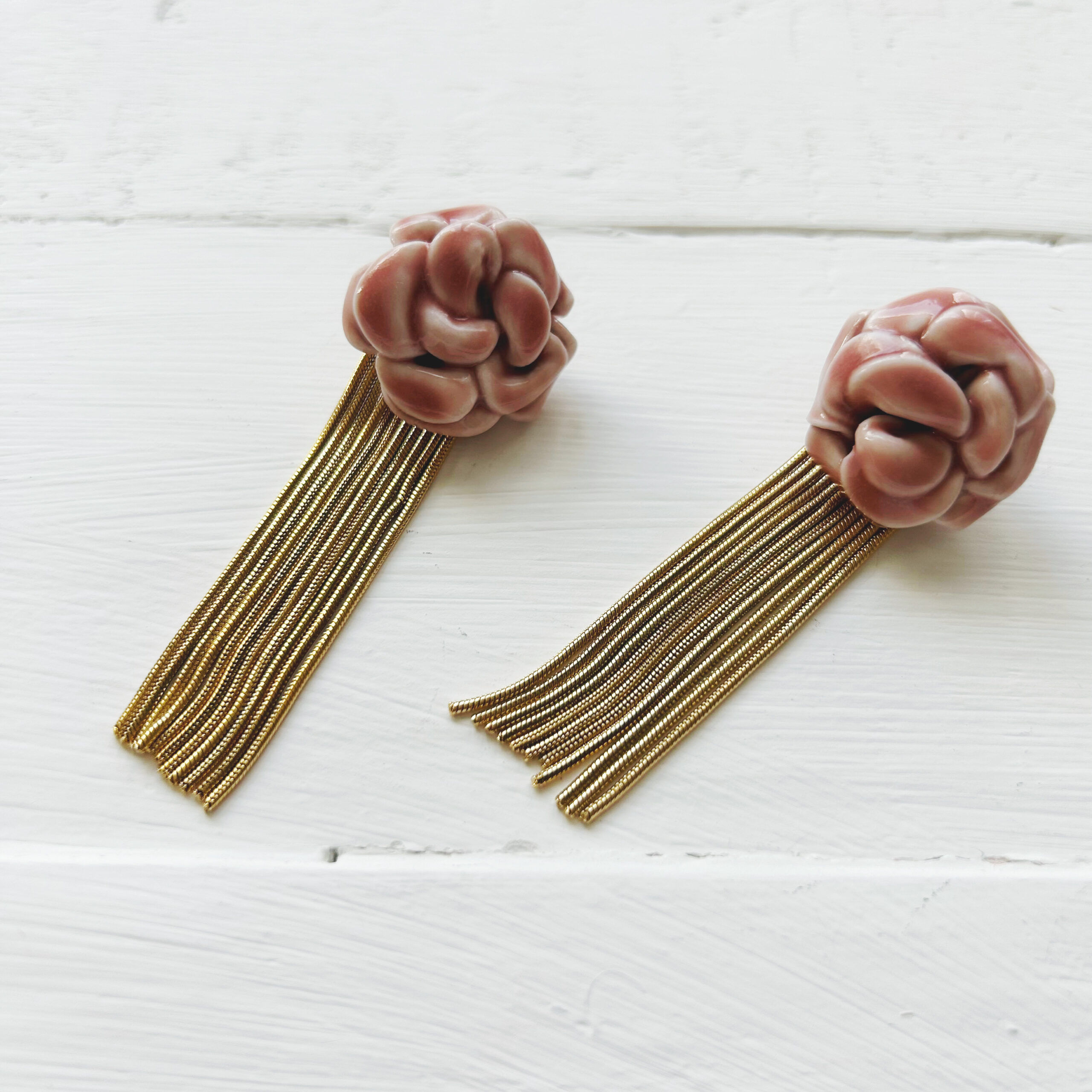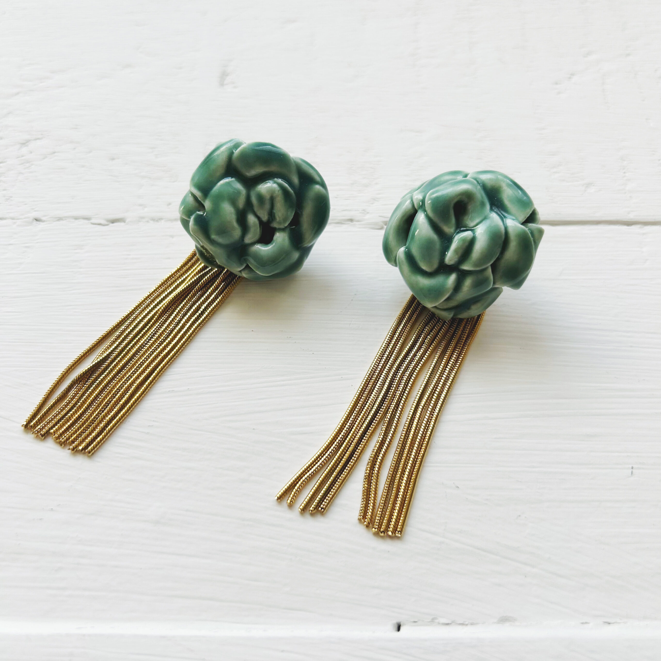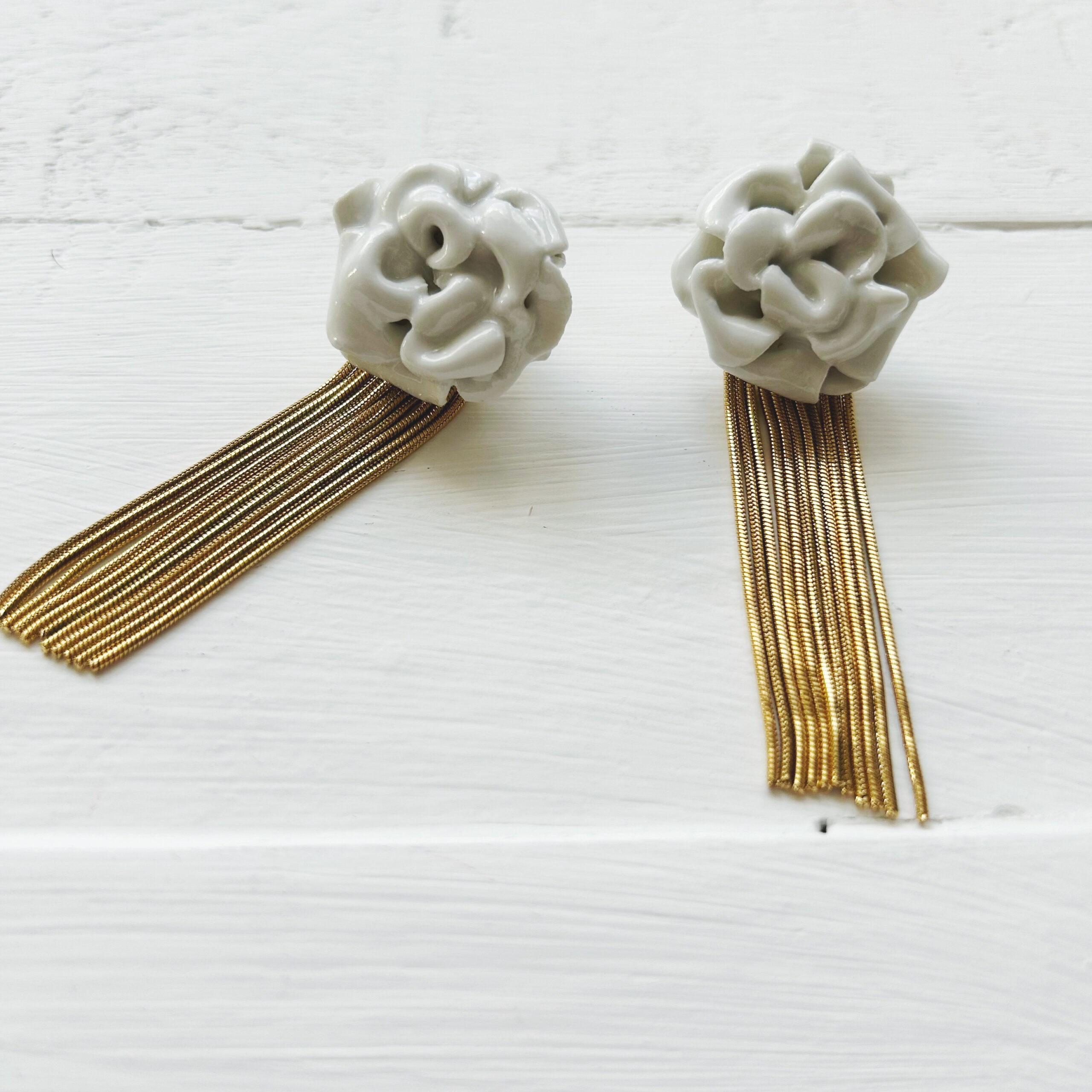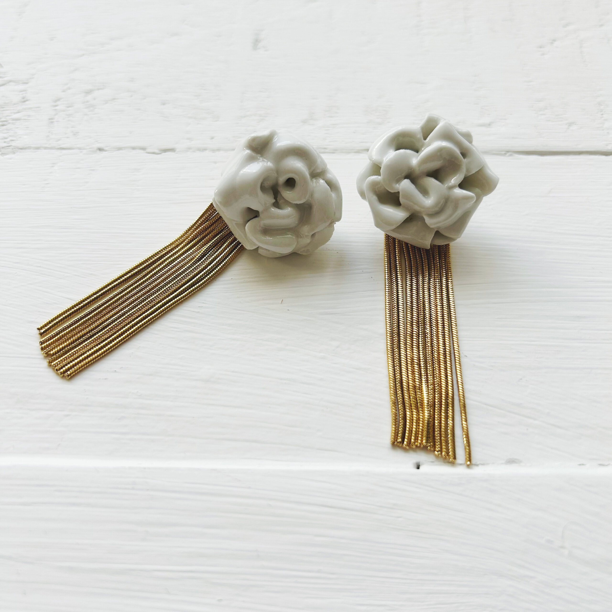 Pendientes de ceramica porcelana esmaltada, con fornitura de acero bañado en oro.