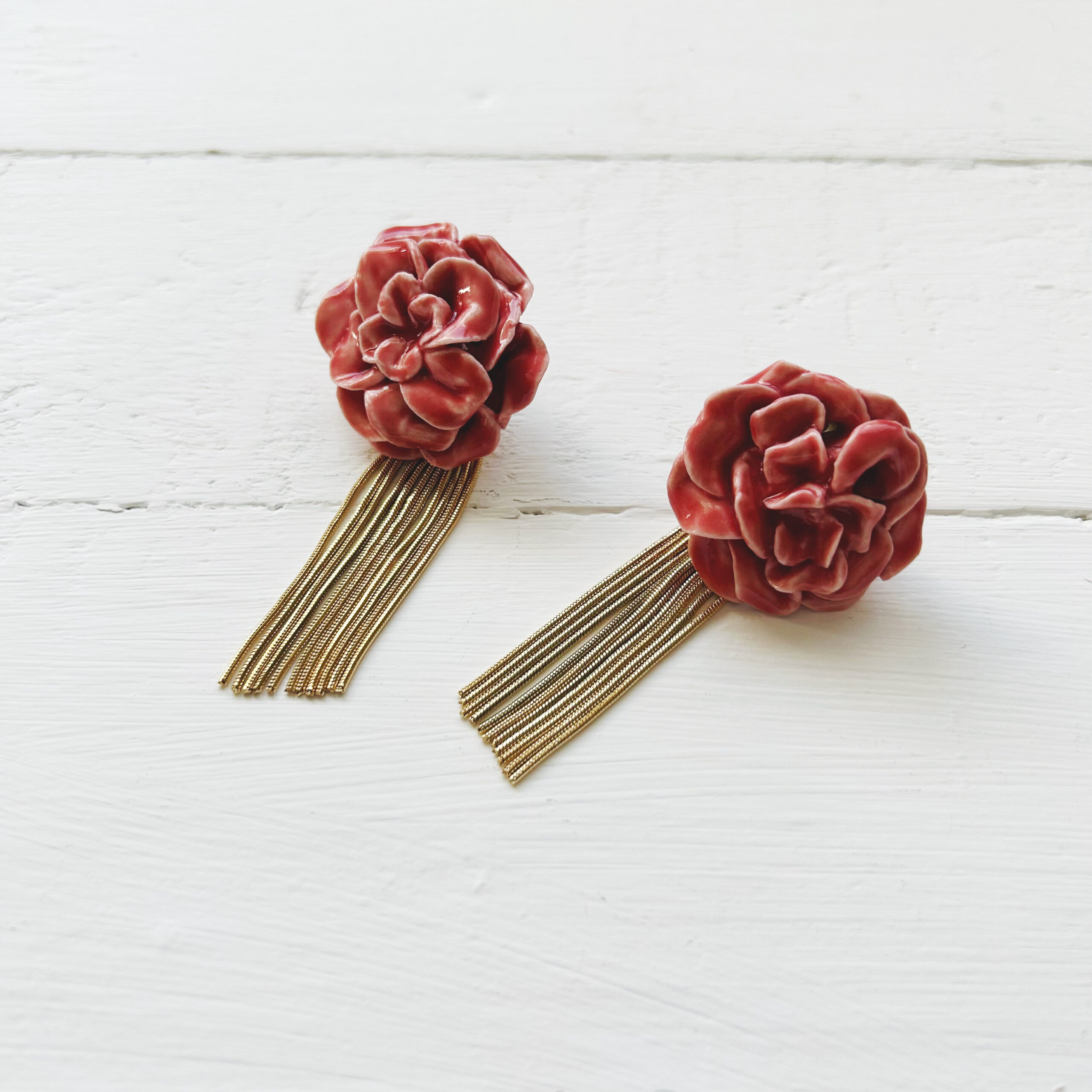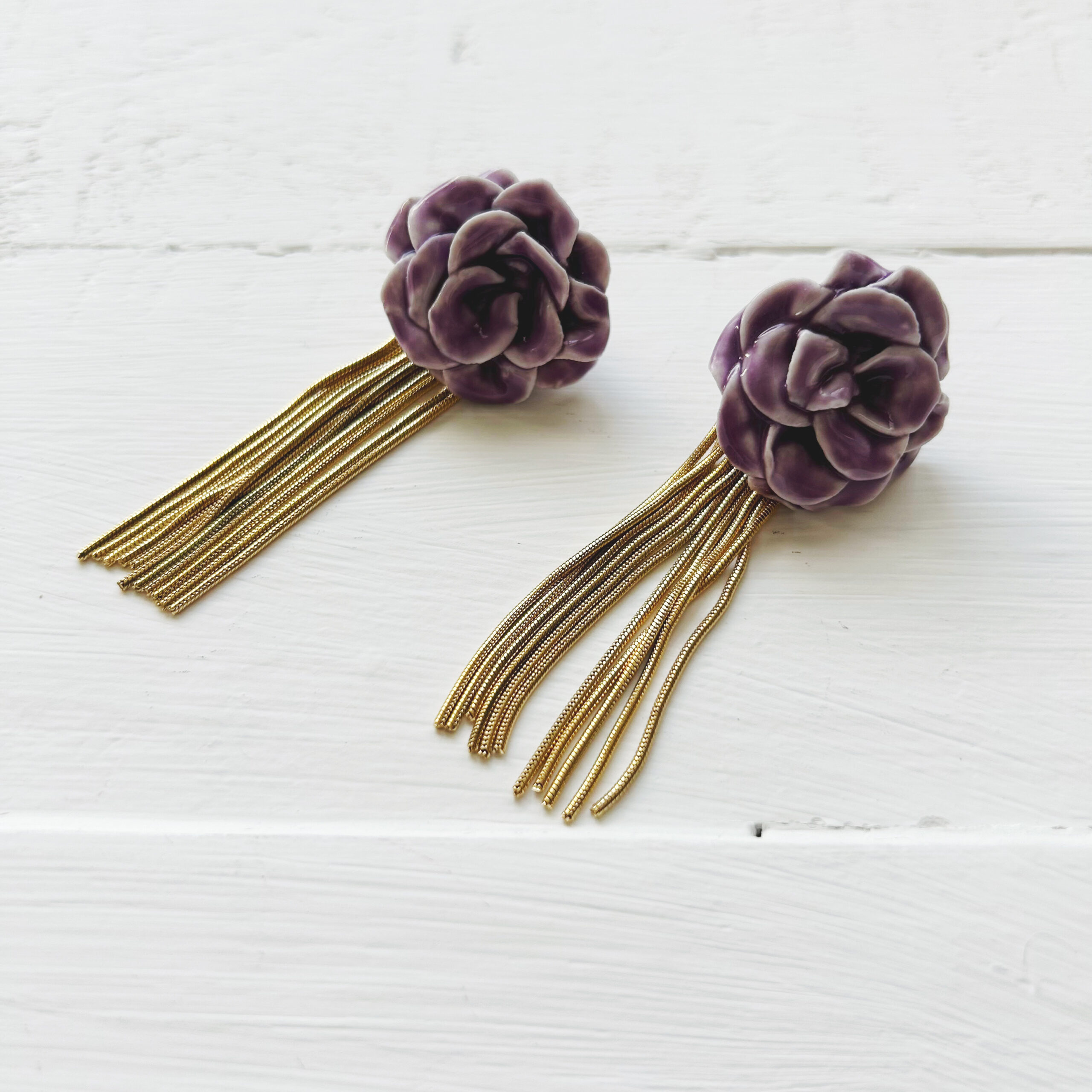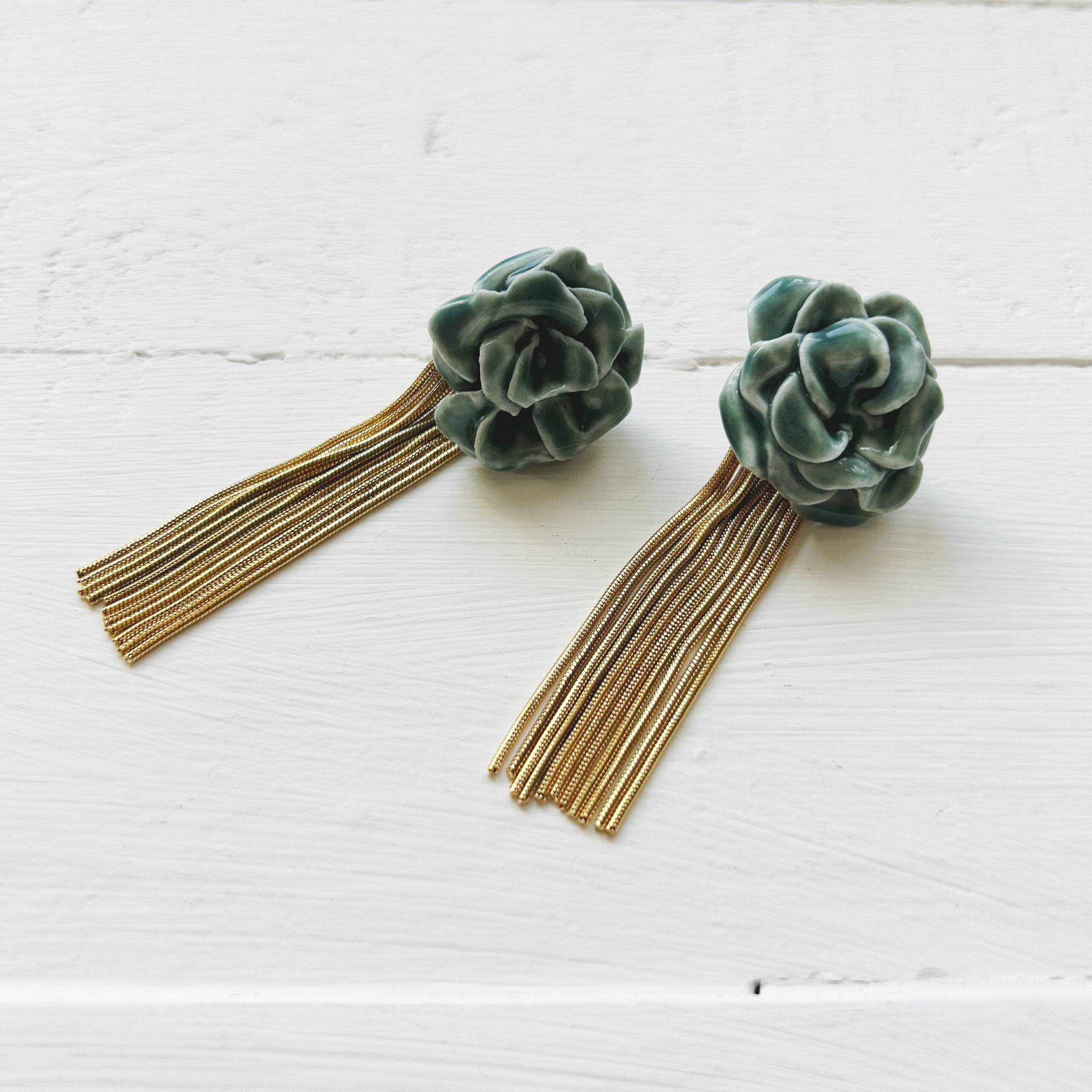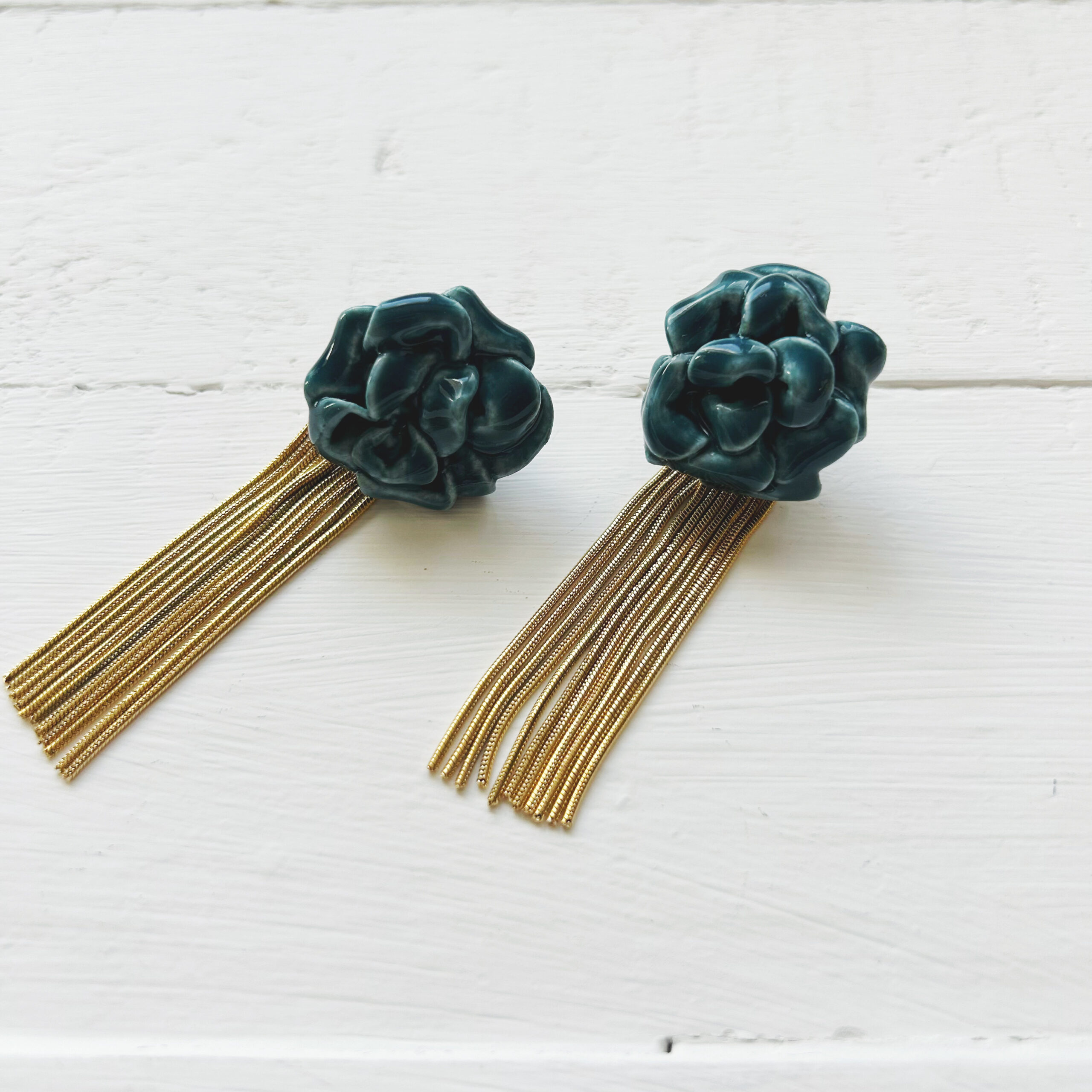 Pendientes de ceramica porcelana esmaltada, con fornitura de acero bañado en oro.